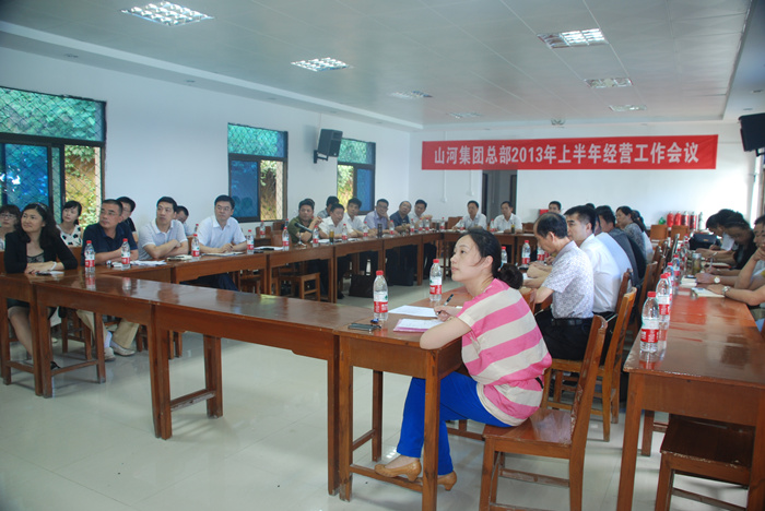 七月的大崎山之巅松涛阵阵,清风拂面。山河集团总部2013年上半年经营工作会议于7月27日在这里隆重召开,这是集团公司自湖北区域公司从总部分离之后召开的第一次半年经营工作会议,参会人员共计五十余人,会议分上午场和下午场,由集团公司总经理龚卫国同志主持。