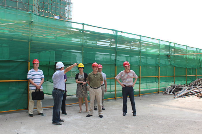 在恒正实业詹总、工程部李总等陪同下,董事长一行在施工现场仔细了解工程进度,查看工程质量,并听取了恒正实业关于工程情况的汇报。