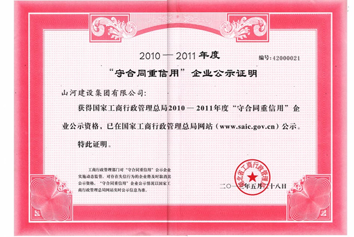 山河集团荣获国家工商总局2010―2011年度“守合同重信用”企业称号
