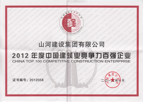 在日前召开的2012年度中国建筑业双百强企业发布会上,山河建设集团有限公司凭借较强的市场竞争力、先进的企业管理水平、良好的社会品牌,再次获得“中国建筑业竞争力百强企业”称号。