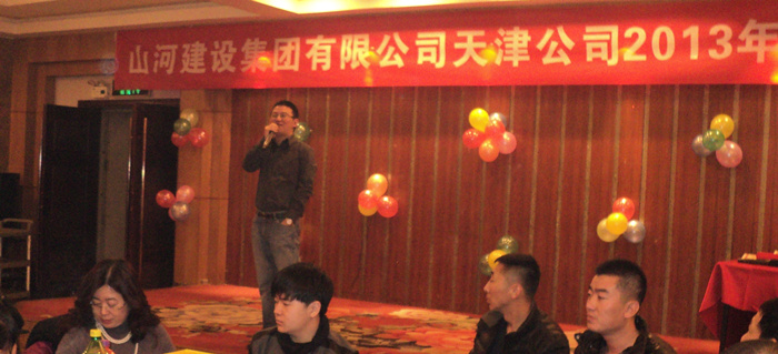 金蟒穿云去,紫骝踏雪来。在这辞旧迎新的时节,山河建设集团(天津)有限公司2013年年会于2014年1月11日在天津塘沽区北海明珠酒店圆满举行。大会凝聚了公司管理层、项目经理的智慧和汗水,是天津公司对既往丰富经验的传承和对未来战略规划的构想,也是员工共聚一堂、喜迎新春的欢聚盛会。