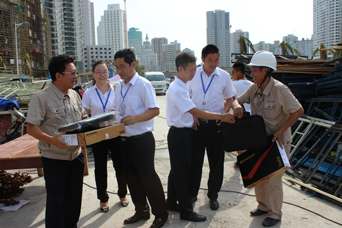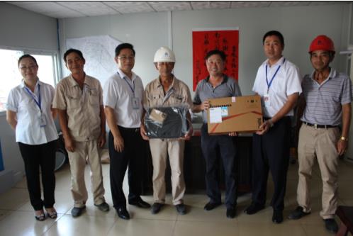 海南公司全体员工在灾后第一天均按时到达工作岗位,不顾小家顾大家,积极开展灾后重建工作。公司同时要求各项目部及时检修水电、清理现场、修复板房、整理物资上报损失,争取在最短的时间内恢复日常生活并制订灾后施工方案重新投入生产。与此同时,海南公司组织商讨灾后补助预案,安排批量购买办公用品,电脑、打印机、桌椅等,累计5万余元,积极慰问受灾项目部。