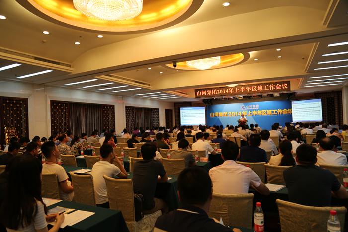 荷风送香气,竹露滴清响。8月2日,山河集团2014年上半年区域工作会议在美丽的东湖之滨隆重召开。总部全体员工、区域公司高管、分(子)公司高管、委派财务人员近200人参加了会议。大会由集团公司副总经理舒建兵主持。作为阶段性的专题会议,本次区域工作大会主要任务是全面总结各区域公司上半年工作完成情况,深刻查找发展中出现的问题,认真分析现阶段的困难和差距,并周密部署下半年的各项工作。
