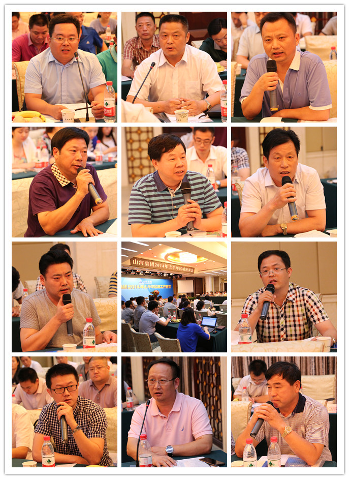 各区域公司总经理对上半年的工作和存在的问题进行了汇报,并作了下半年的工作计划安排。湖北区域公司上半年经营业绩稳定,省内黄冈公司、襄阳公司市场开拓效果显著,工程管理优势明显,创优夺杯再获佳绩。新疆区域公司上半年保持稳步前行,质量安全管理,差异化运营成效显著,创优夺杯热情高涨。天津区域公司乔迁新址,焕发生机,桩基工程有特色,承接工程重心聚焦工业工程。海南区域公司在市场严峻的经济形势下,稳步经营,严控风险,品牌优势明显。西南区域公司管理构架完善,工程技术团队强大,团队建设和流程优化两方面工作取得了较好的成绩。广东区域公司发展势头良好,是所有区域公司完成全年计划比率最高的,广州、东莞、中山等二级网络布局扎实。广西区域公司上半年积极开展定期检查和不定期巡查,确保了各在建工程的正常运转。华东区域三个省(市)各具特色,呈现出良好的发展势头:安徽公司上半年以消化存量为主,着重加强在建工程管控,其中阜阳高速时代华府工程得到国家住建部检查组高度评价;徐州公司狠抓项目团队建设,品牌推广初见成效;江西市场紧跟万科,大客户战略效果明显。新成立的烟台公司将紧紧抓住烟台的城市战略发展,借助集团公司的品牌优势,在烟台建筑市场占有一席之地。