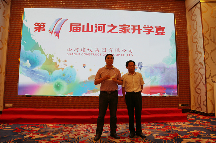 山河集团每年都会定期举办学子宴和捐资助学活动,山河人无私助学的善举给千千万万个寒门学子照亮了求学之路,也给他们的家庭带来了希望和改变。为表彰在2014年第九届捐资助学活动中的优秀代表,升学宴的第一个环节就是由集团公司党委书记舒先厚向19位项目经理颁发“慈善之星”的奖杯,同时授予湖北公司、新疆公司先进单位的荣誉称号。