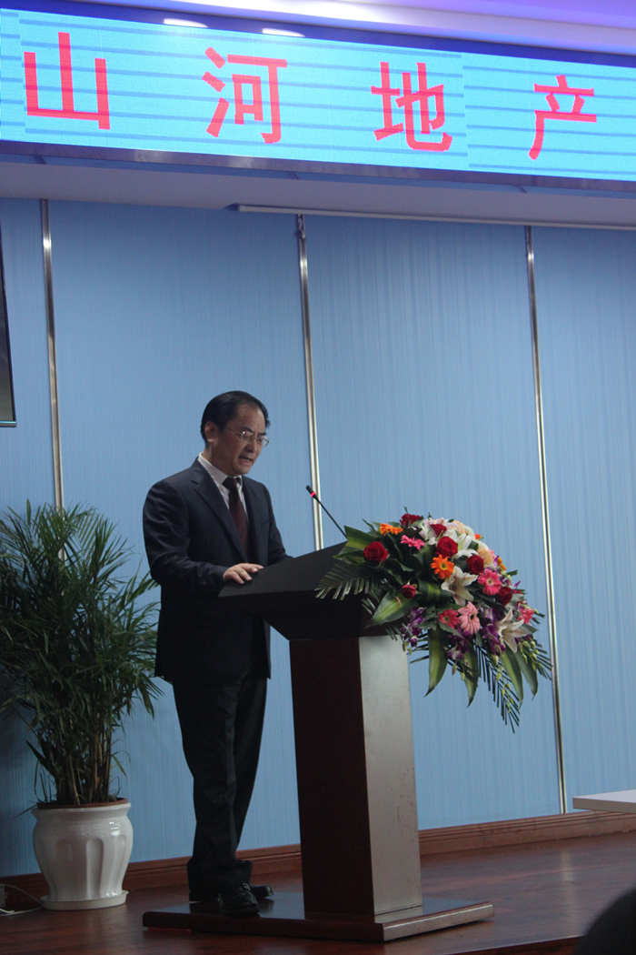 山河地产集团董事长王君一首先对集团领导的信任和托付表示感谢,她表示,2014年房地产市场的演变让许多企业措手不及,山河地产集团将重视房地产的新经济领域,重视产业协调的力量,不断创新自己,树立大格局观。地产集团成立之后,将优化地产项目的区域布局,全力盘活存量,创新销售方式,积极创造多元化的融资渠道,适当延伸产业链寻找增长点。王董事长强调,山河集团是一个开放的平台,集合了优秀的忠诚的人才,我们将凝聚新力、开创新格局,共同打造山河地产美妙灿烂的未来。