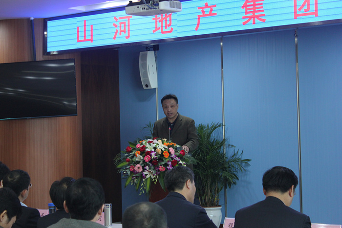 随后,地产集团总经理黄斌在发言中表示,加入山河,感到非常光荣和自豪,也深刻意识到自己的责任和使命,未来他将忠诚职业、勤恳敬业,尽快融入山河文化,发挥专业能力和多年经验,推进企业发展,将山河地产打造成新的利润增长点。