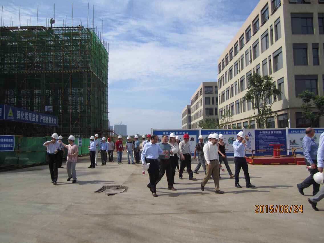 6月24日上午,武汉光谷国际生物医药企业加速器2.1期项目迎来最高规模的检查。美国通用集团和德国美施威尔领导莅临现场视察,对项目的工程质量、安全施工要求、夏季施工程序、工程监理等细节进行了严格细致的查看。