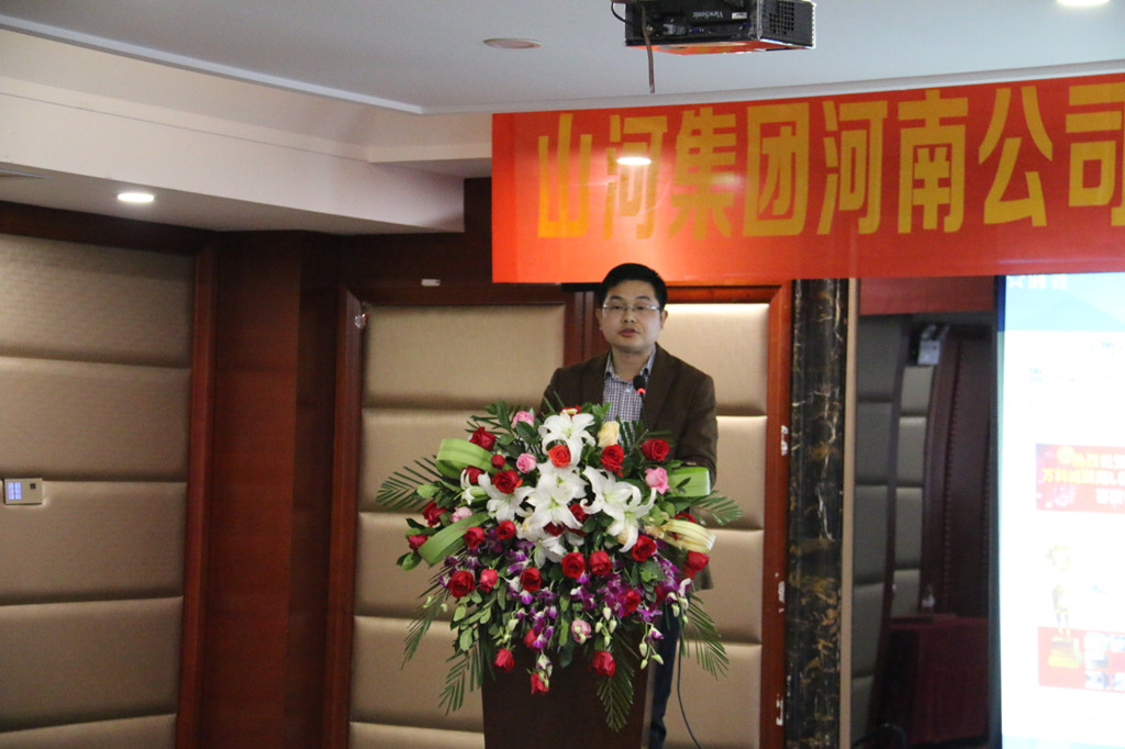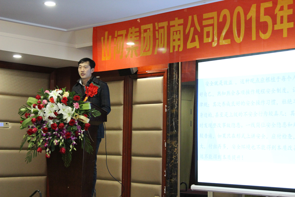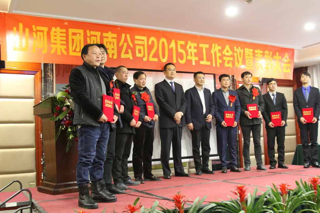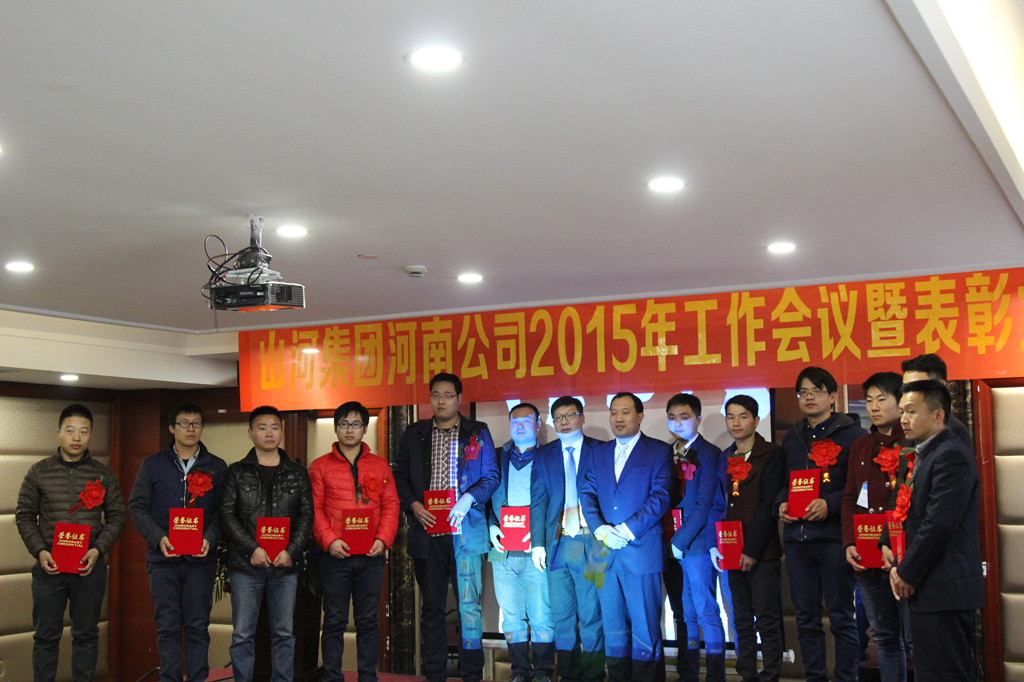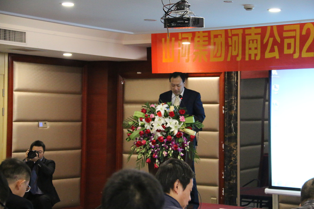 2016年1月16日上午,河南公司2015工作会议暨表彰大会在郑州格林东方酒店隆重举行。河南公司全体员工、项目经理、项目部主要管理人员、表彰人员等共计70余人参加了此次会议。山河集团常务副总兼湖北公司总经理林中茂、河南公司总经理马文敏等领导参加了本次会议。大会由河南公司副总经理余亮主持。