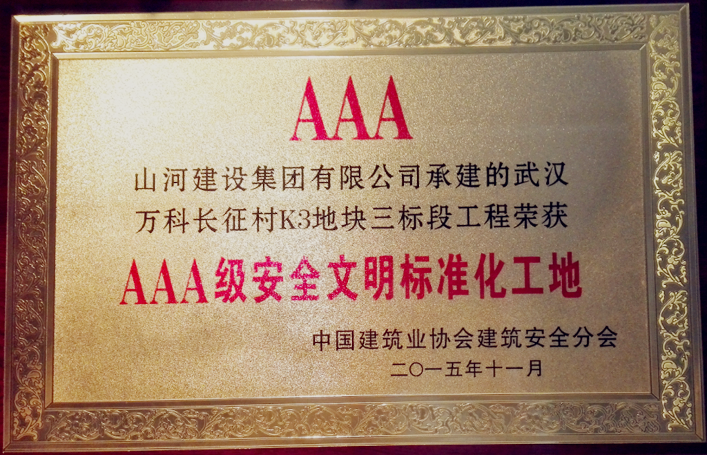 山河集团万科长征村K3地块项目荣获全国“AAA级安全文明标准工地”称号