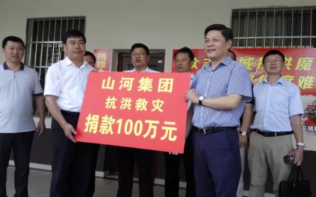 入汛以来,武穴连续多日发生强降暴雨,险情频发,多处受灾,给人民生产生活带来了重大影响和损失。7月18日,山河集团董事长程理财、副总经理舒建兵等一行来到武穴市防汛抗旱指挥部,向武穴抗洪救灾捐赠100万元。黄冈市委常委、纪委书记王立兵,武穴市委书记郝胜勇、市长李新桥、纪委书记金晓耕、政府办主任吴晓亮及副主任郭丹东参加了捐赠仪式。