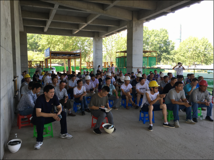 为提高项目部外脚手架的搭设水平和观感质量,7月23日,湖北公司安全部在青山科技体育中心项目部召开了外脚手架内部交流会。湖北区域部分在建项目的现场负责人、安全员、架子工负责人及班组长等共计110余人参加了会议。会议由集团安全部经理兼湖北公司安全部经理陈敬章主持。