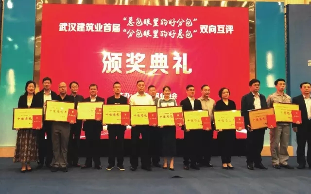 今日,武汉建筑业协会在光谷金盾大酒店三楼举行2015年总分包互评颁奖典礼活动。山河集团获颁“十佳总包”,集团旗下公司竹安脚手架与竹安设备则获颁“十佳分包”,双双上榜。