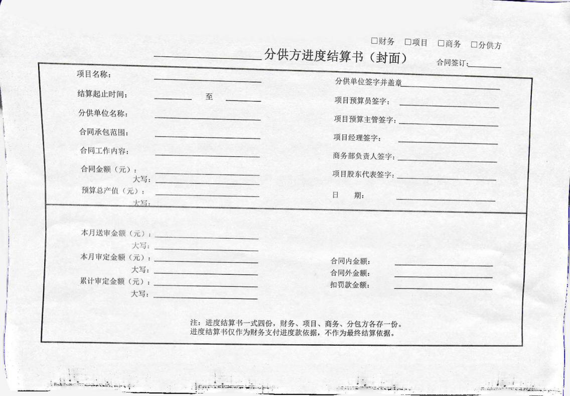 2、其次,项目商务部、材料部门每月20-25日根据本月现场完工进度及材料收料清单,对已签订合同的各分供方办理进度结算,完成多少结算多少,项目经理在结算书封面签字确认后,交财务及时入账。