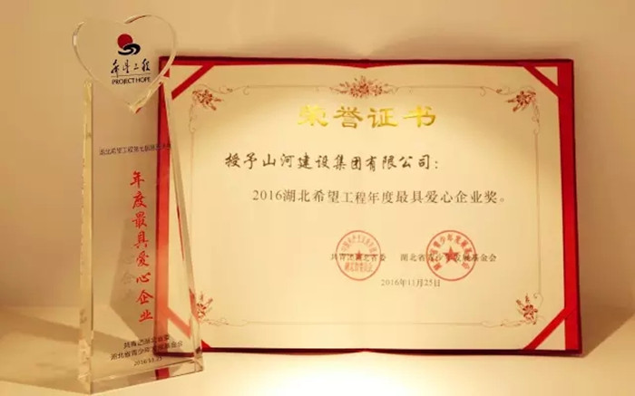 11月25日晚,由共青团湖北省委、省青基会主办的“湖北希望工程第七届慈善盛典”在湖北省奥体中心举行。山河集团受邀参加此次盛典,并获颁2016湖北希望工程“年度最具爱心企业奖”。