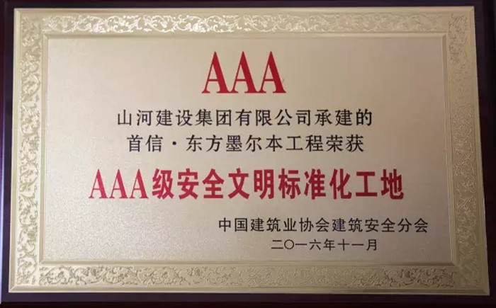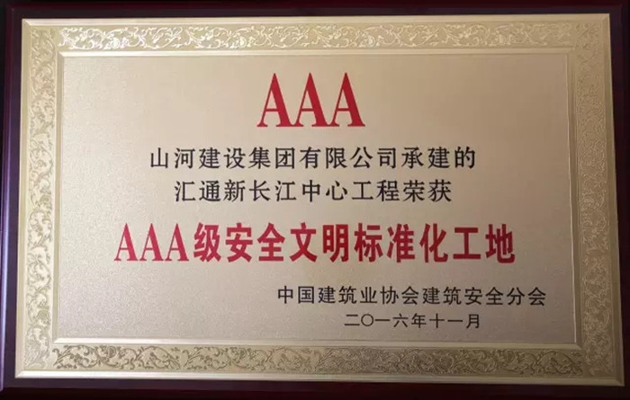 “AAA级安全标准化工地”是全国安全文明施工的最高奖项,被业内誉为安全文明施工方面的“鲁班奖”,今年全国共500项工程获此荣誉。山河集团申报的两个项目均获此殊荣,再一次肯定了山河集团在强化项目管理、提高工程品质的方面做出的成绩。