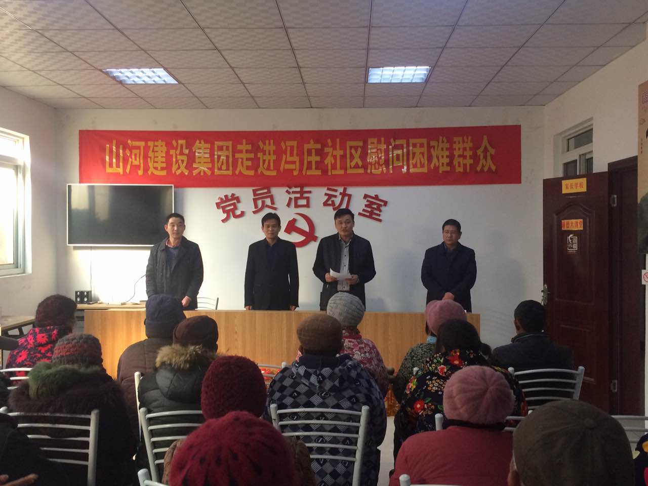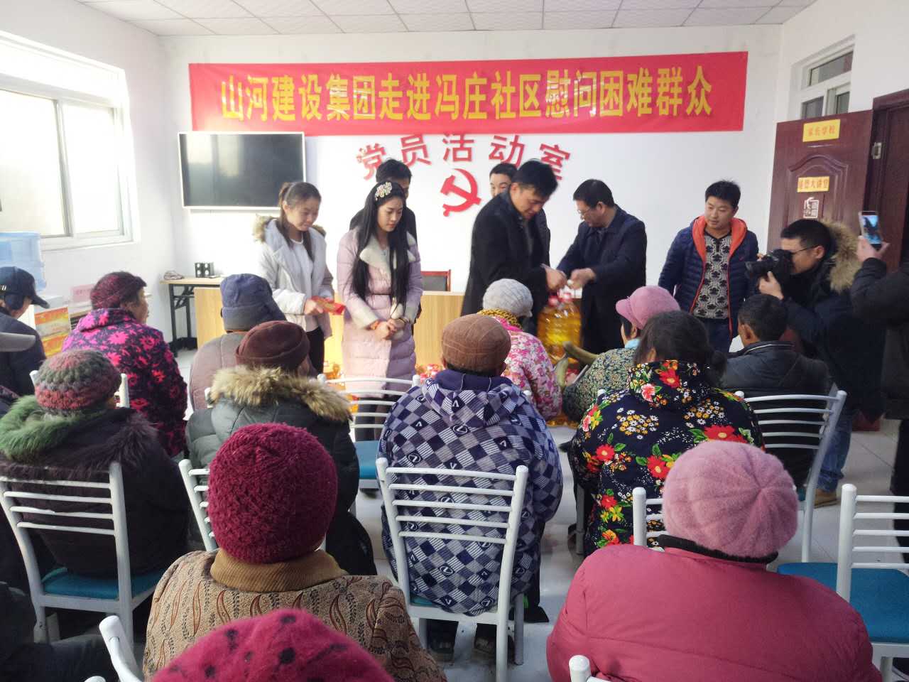 1月17日下午,值此新春来临之际,为答谢云龙区政府、冯庄社区领导及社区群众对山河集团徐州公司的帮助,徐州公司总经理陈伟率全体员工走进冯庄社区,慰问社区20个困难家庭。