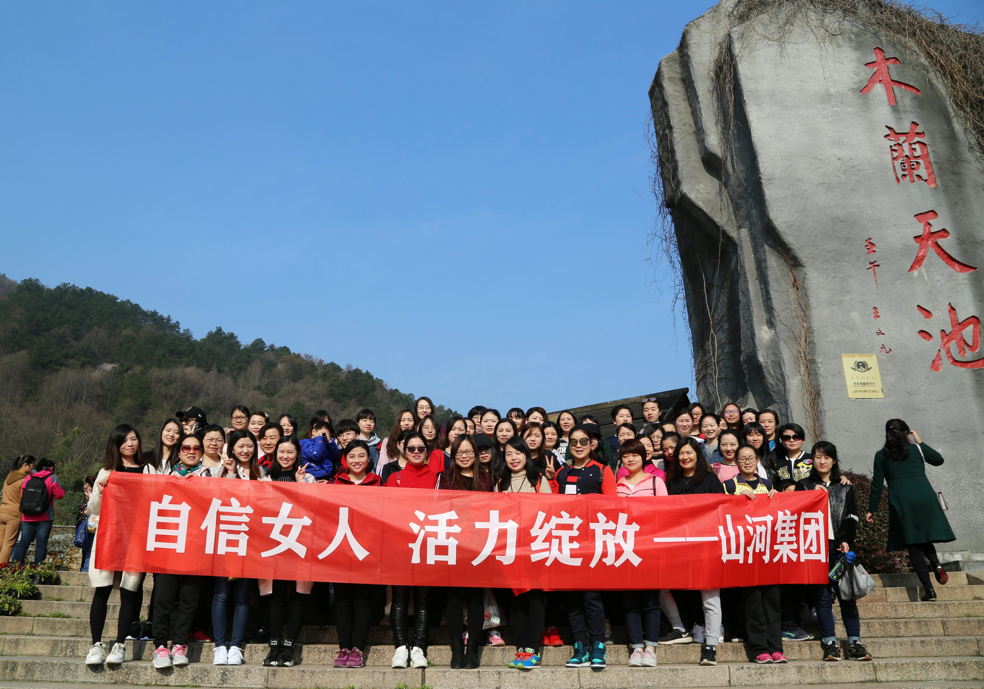 阳春三月,万物复苏,正值“三八”国际劳动妇女节。为庆祝节日,丰富广大员工业余生活,增强员工凝聚力,倡导绿色文明生活理念,山河集团总部和湖北公司一起参加了由集团党委、工会组织的“木兰天池踏青”活动,和大家一起走进春天,走近健康。