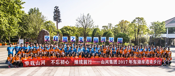 4月28日,阳光明媚,山河集团党委、工会组织的2017“爱我山河“徒步行活动在美丽的东湖绿道圆满落幕。来自集团总部、地产集团、湖北公司、在汉子公司共260余名选手在主会场参加了徒步行比赛。