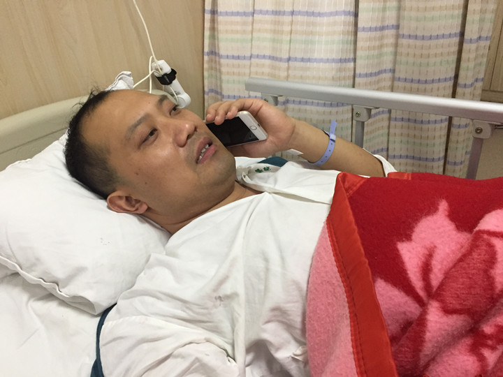 病床上的刘军处理着工地事务