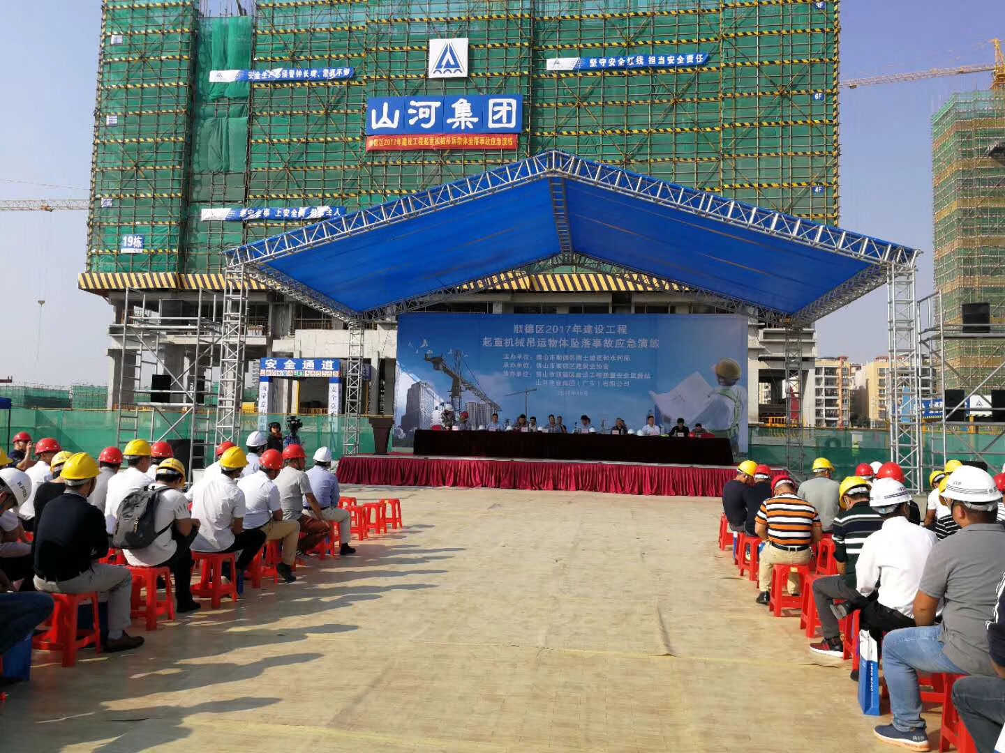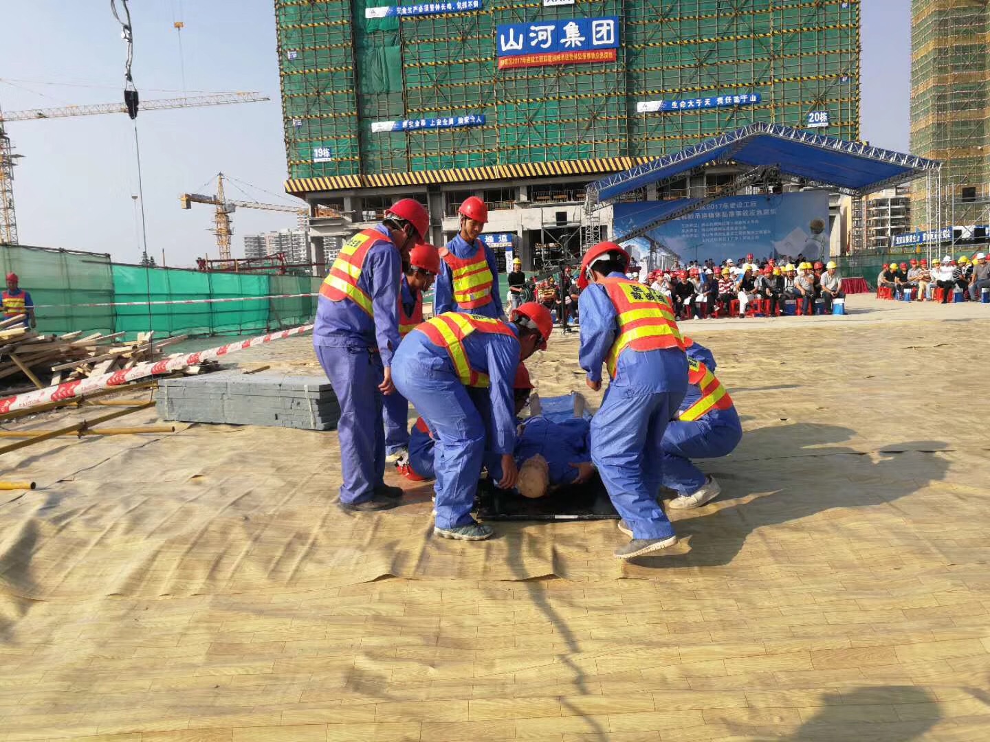 10月31日下午3时,山河集团广东公司中海万锦公馆项目部组织开展塔式起重机吊装物坠落事故应急演练,通过参与演练,达到全员安全教育目的,强化安全管理。