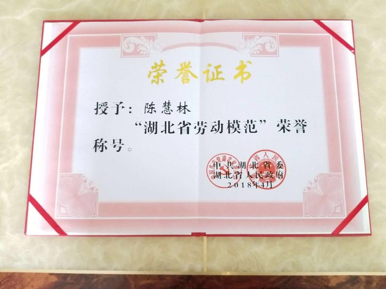 山河人的骄傲|陈慧林获“湖北省劳动模范”光荣称号