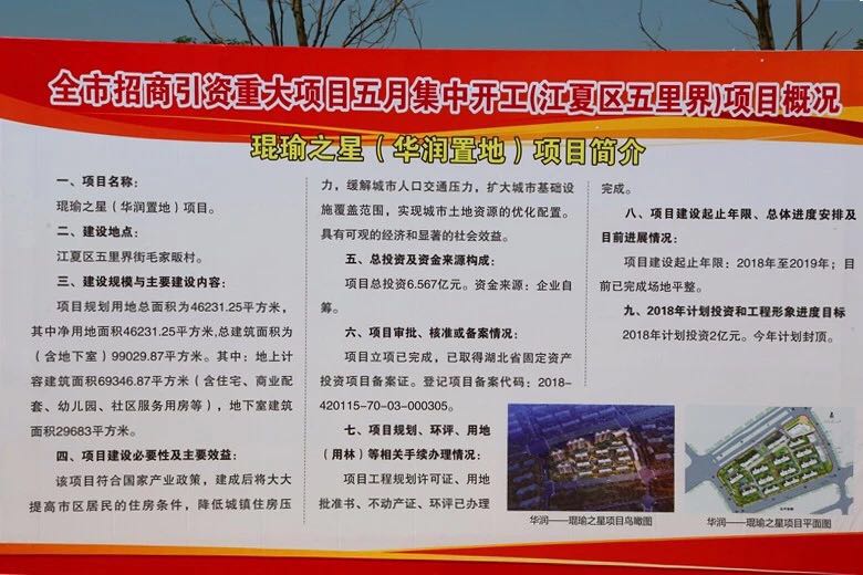 五里界街道办事处负责人介绍了当地项目建设基本情况。山河建设集团湖北公司琨瑜之星项目的甲方――华润置地集团总经理黄崇起作为企业代表发言,他介绍了项目建设的简况,充分肯定了武汉市招商引资的成就,表示要同山河建设集团强强联合,为武汉市的改革开放和经济建设作出贡献。