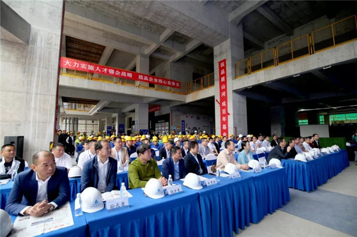 我们力求通过今天的技能比赛,培养实用技术人才,打造新时代产业工人队伍,为实现“跻身中国建筑业第一方阵”目标而努力奋斗。