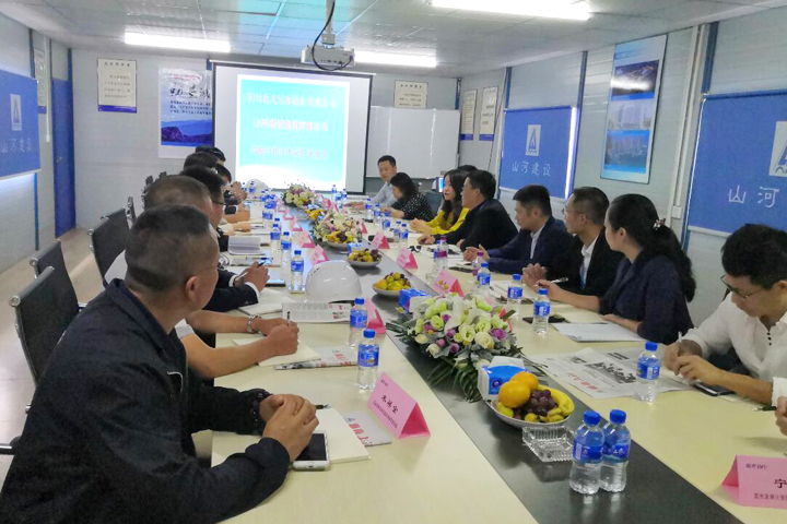 双方秉承合作共赢的理念,从合作力度的深入、合作项目的拓展、工程建设的进度等方面进行了沟通交流。山河建设集团项目管理公司总工程师黄超恒就双方合作的襄阳蓝光半岛公馆项目的工程概况、施工进度、现场管理等情况进行了汇报。