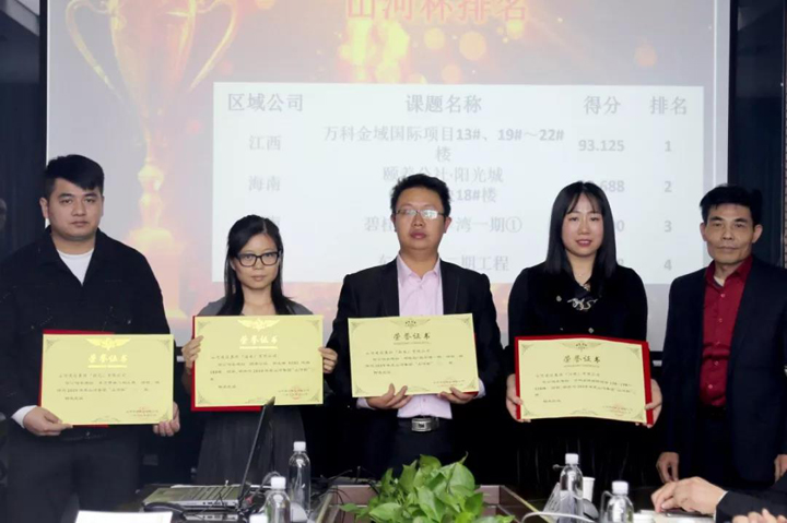 江西公司万科金域国际项目13#、19#~22#楼荣获山河杯金奖,海南公司颐养公社·阳光城0502地块18#楼、西南公司碧桂园•翡翠湾一期工程、湖北公司东方雨林二期工程荣获山河杯银奖。