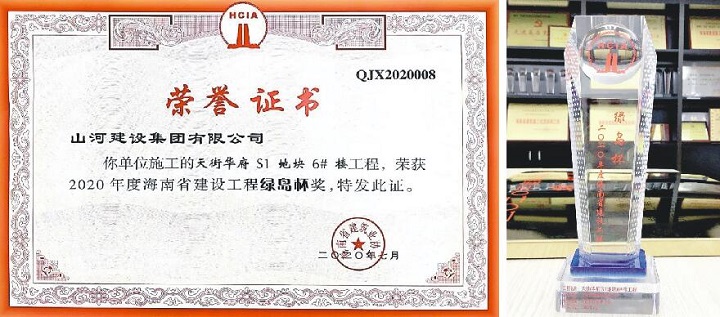 近日,山河建设集团海南公司承建的天街华府S1地块6#楼工程荣获2020年度海南省建设工程“绿岛杯”奖,这是海南公司第七次揽获海南省建设工程质量最高荣誉。
