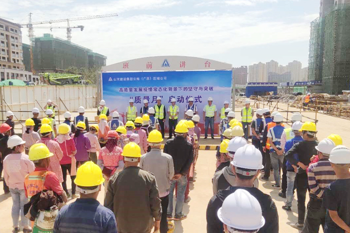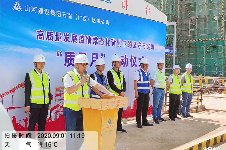 9月1日,山河建设集团云南(广西)公司2020年“质量月”活动启动仪式在中骏云古小镇8号地块项目举行,活动以“高质量发展:疫情常态化背景下的坚守与突破”为主题,旨在进一步强化质量意识,提升质量管理水平,切实做到逢建必优。公司工程团队,各项目部项目经理、技术负责人、质检员等150余人参加了活动。