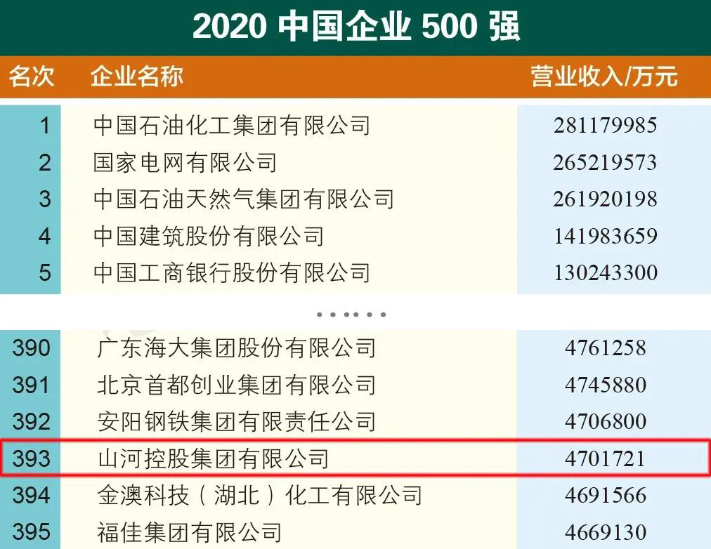 28日,“2020中国企业500强”榜单正式发布,山河集团再度上榜,名列第393位,这也是集团连续第7次获此殊荣。在上榜的11家湖北企业中,山河集团是唯一一家建筑企业。