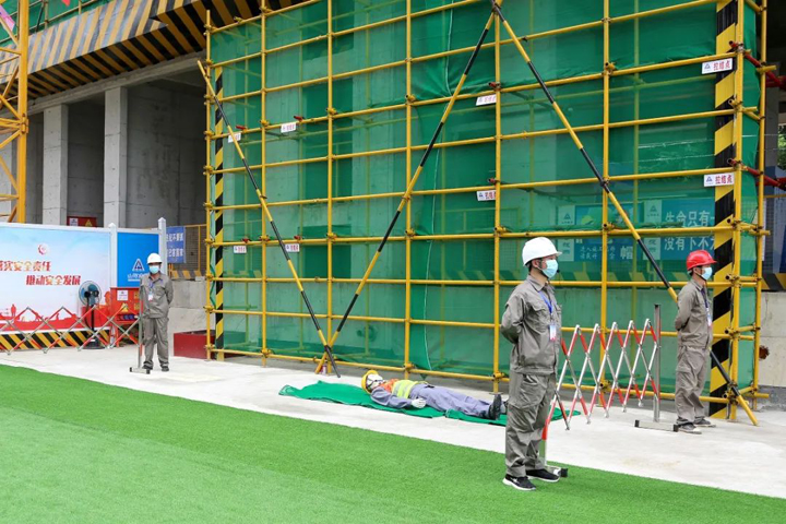 6月2日,武汉市洪山区2021年“安全生产月”启动仪式暨建筑施工应急救援演练活动在山河建设集团总承包公司承建的朗诗·熙华府项目施工现场举行。洪山区政府党组成员牛正可,区应急管理局局长金昆玲,区建设局、消防救援大队、和平街道办事处、建筑管理站等单位领导出席启动仪式,区发改局、城管执法局、卫生健康局、科技和经信局、商务局等近60家单位代表,建设单位、监理单位代表,总承包公司工程团队及在建项目代表等300余人参加了活动。洪山区建管站站长钱伟主持启动仪式。