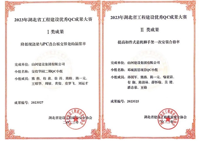 山河集团两项QC成果获评2023年湖北省工程建设优秀成果