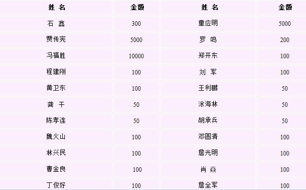近日,从公司财务部获悉,集团公司各个项目经理、管理人员、基层员工积极响应号召,伸出团结友爱之手,纷纷慷慨解囊奉献爱心,以下是部分捐助人员名单(按捐资时间排序):