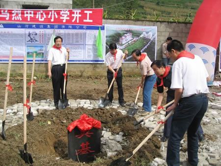 我公司援建四川灾区的两所希望小学正式奠基动工