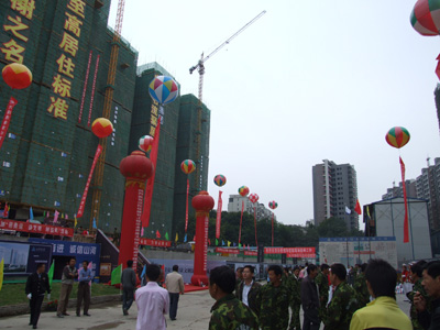 秋风送爽、彩旗飘扬,汉阳区2008年度建设工程安全质量文明施工现场观摩会于9月27日在我公司香榭琴台项目经理部隆重召开。出席此次会议的领导有:武汉市委副秘书长唐昌海;汉阳区委常委、副书记吴明益;汉阳区委常委、副区长张 军;汉阳区委常委、宣传部长张本满;汉阳区人大副主任朱时木;汉阳区政协副主席冯从捌;武汉市建委建管办副主任贾巾戈;武汉新区指挥部工程建设部部长赖成林;武汉市建设工程安全站站长邱济彪;武汉市建设工程市场站副站长王伟震;武汉市建设工程质监站副处长李克平;汉阳区文明委主任甘琼;汉阳区安监局局长范俊华;汉阳区建设局党委书记陈双喜;汉阳区建设局局长熊成明;汉阳区建设局副局长、建管站站长王辉友等。出席此次会议的还有:各区建管部门领导、汉阳区在建工程的建设、施工、监理单位代表共计五百余人参加了本次活动。