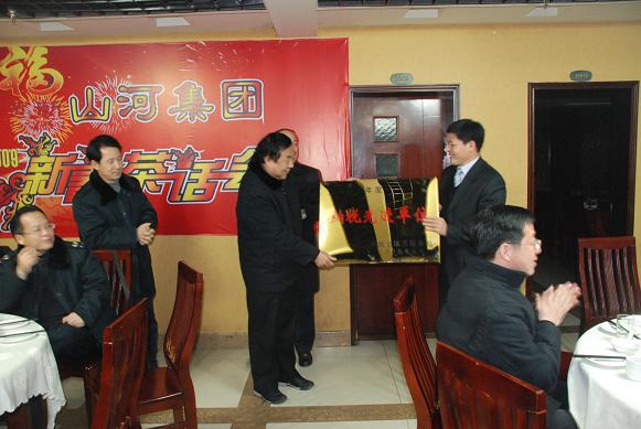 程理财董事长说,山河集团能够拥有今天的成绩,顺利走到今天,首先要感谢家乡政府和人民的鼎力支持。在各位同仁的努力下,2008年山河集团经历了经济危机的洗礼,基本上完成了预期目标。因此在座的各位项目经理,在新的一年还是要抓工程的安全和质量,现在到了年关,是考验大家的时候,大家一定要咬紧牙关,战胜困难。在这里山河集团衷心祝愿各位领导新年快乐,万事如意。祝愿公司各位同仁,开开心心过个好年。